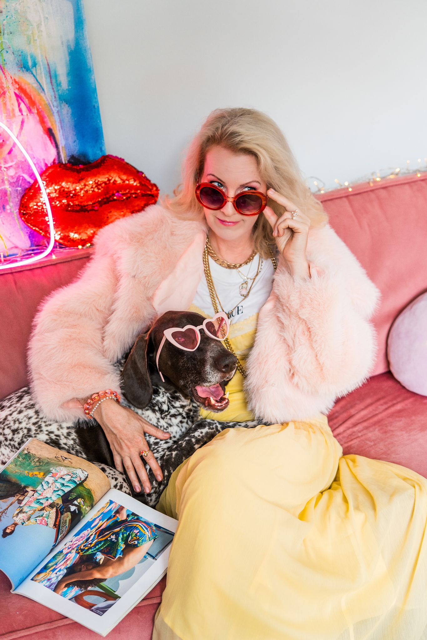 “Ik vond het heeeerlijk om de shoot voor te bereiden en samen met Marjolein de Wit, de styliste, door mijn eigen kledingkast te gaan en die van haar en zo op ideeën te komen voor de outfits, waar ze nog extra items aan toevoegde en volop accessoires. Ik heb een rekje klaar gehangen waar in de aanloop naar de shoot al kleding aan kwam te hangen, als voorpret. En ik heb een roze poofy jurk gehuurd, die me helemaal de vlinders gaf!
